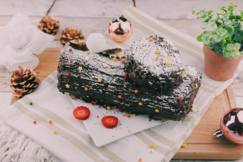 Voici une fondante recette de Bûche de noël au chocolat, beurre de cacahuète fraise et pralin ,sans gluten et sans lactose. Ne cherchez plus nôtre bûche, elle est là. Cette